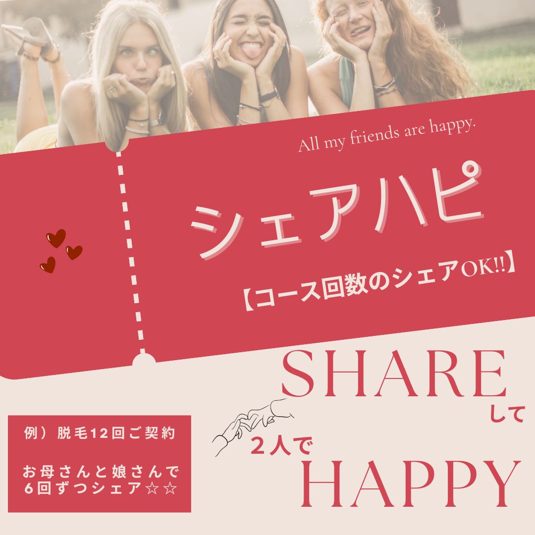 親子で、お友達同士で、2人ペアで脱毛・フェイシャルコース回数のシェアOKなプランです◎
